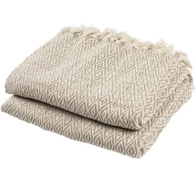 Contemporary décor reaches new levels of casual fashion in the diamond patterning and fringe detailing of the Safavieh Danita Throw. Knit using cool cotton yarns, Danita is soft to touch with beige and cream tones completing the breezy look of the design. An ideal blanket for both draping as an accent and using for warmth. Care Instructions: Machine wash with water below 86¡ F. Use soap or detergent. Rinse in cold water. Tumble dry at low setting.