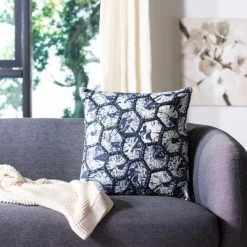 Bring a splash of coastal color to room décor with the enchanting design of the Delra Accent Pillow. The playful tie dye pattern of Delra is artfully displayed through a web of geometric frames lending a sense of depth and dimension to the sofa, loveseat, or bed. Made using pure soft cotton, with a handy zipper on back for easy access care. Care Instructions: Dry clean only