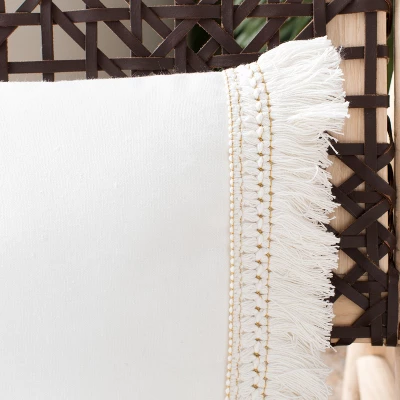 Uptown chic meets everyday contemporary décor in this Larna Pillow. Larna’s 100% white cotton cover is soft and smooth to the touch, while its braided accents and fringe details add a touch of whimsy, ideal for softening the edge of clean lined furnishings. Care Instructions: Dry clean only