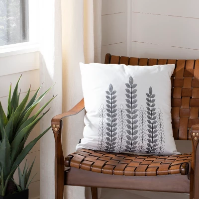 The Valorie Vine Pillow epitomizes simple elegance with a spray of natural imagery and airy background. A welcome accent accessory ideally styled for a country bench, living room sofa or the den, Valorie adds a wonderful sense of natural open space to room decor. A hidden zipper on the back cover makes for easy access care and cleaning. Care Instructions: Pillows tend to flatten during transit, but these tips should help you get that pillow into its fluffiest shape quickly!Once unpacked, gently knead the pillow to help loosen the fibers. Throw the pillow in a dryer on a low tumble setting. The most important tip is to include a sock stuffed with a tennis ball to help “beat” the pillow into its fluffy form. Remove from the dryer, and proudly display your new piece of couch art!
